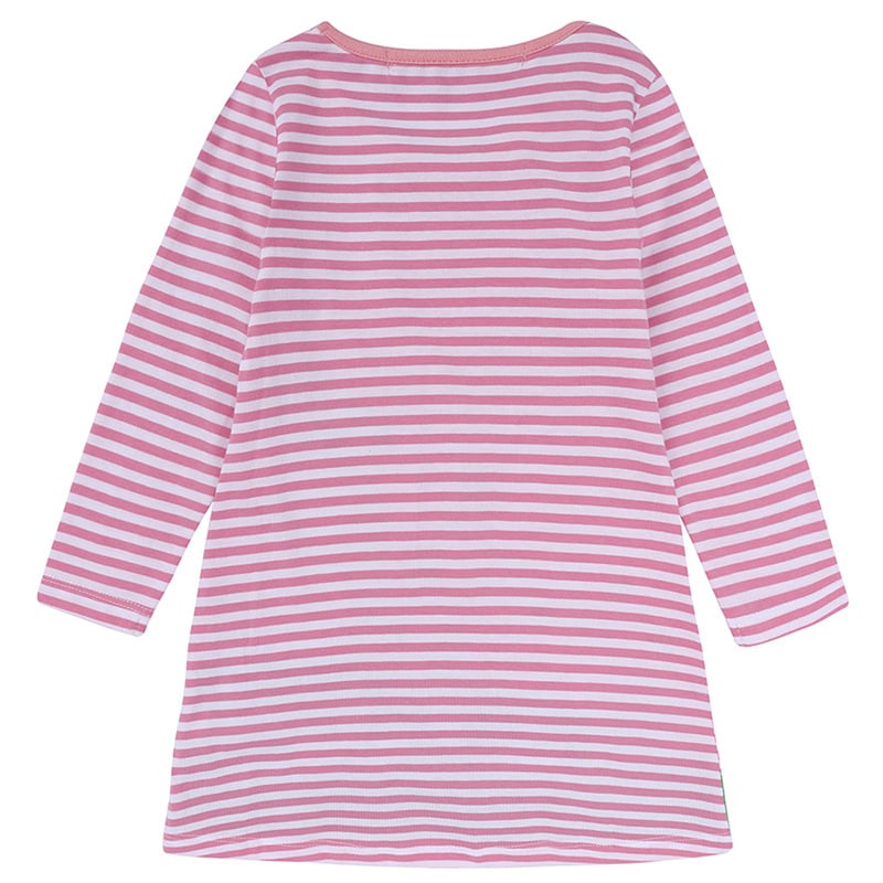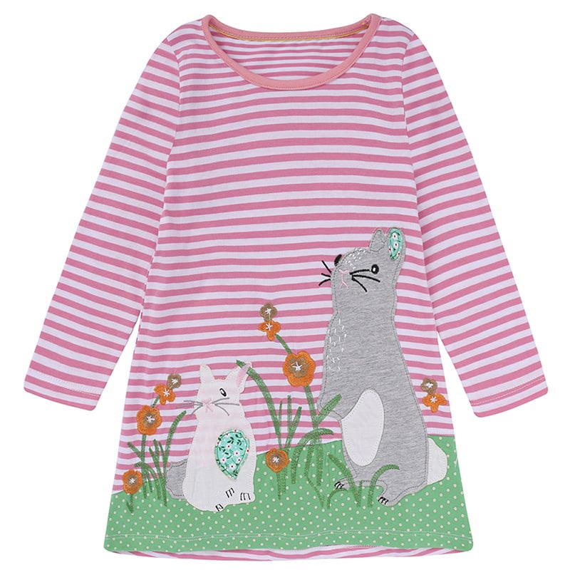 Our dress is available in a lovely pink shade that adds a touch of sweetness to her wardrobe. With six size variations, ranging from 18-24M to 6Y, you can easily find the perfect fit for your little princess. The dress boasts a comfortable cut that allows for easy movement, ensuring she can play and explore with ease.