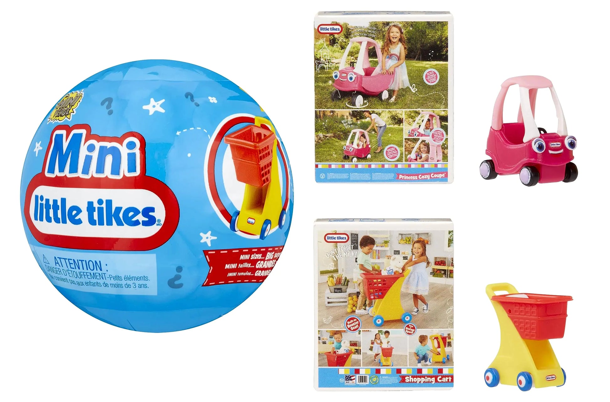 Meet MGAs Miniverse Little Tikes Minis Series 2! Nostalgia in your pocket. Your favorite Little Tikes products are here and they are in mini form! Flash back in time with these fun and iconic retro favorites from MGAs Miniverse! Series 2 includes 12 Little Tikes Minis to collect you can rediscover your favorite Little Tikes products including Princess Cozy Coupe TotSports T-Ball Set Shopping Cart Lil Wagon Wheelbarrow Little Handiworker and more! Each mystery capsule turns into a stackable display and comes with two Little Tikes Minis both in their mini replica packaging. Each capsule is blind so you wont know which figures you get until you unbox them!
